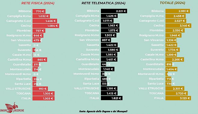 L’Agenzia delle Dogane e dei Monopoli ha pubblicato i dati relativi alla spesa pro capite in gioco d’azzardo. Nelle Valli Etrusche, nel 2024, in linea con la spesa Toscana e al di sotto di quella Italiana, l’importo pro capite, che comprende sia il gioco della rete fisica sia telematica, è di 2.301 euro, mentre in Toscana si spendono 2.720, contro i 3.123 in Italia.
