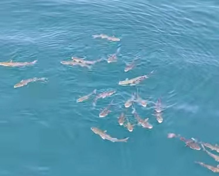 Le persone presenti sul porto sono state incuriosite dal numeroso gruppo di pesci che come confermato dall'esperto Yuri Tiberto dell'Acquario dell'Elba, in realtà sono cefali e non squali.