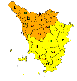La Protezione civile regionale ha diramato un'allerta arancione per la Toscana centro-nord, gialla per le altre zone
