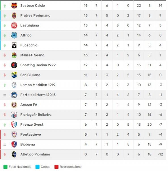 Per il Piombino è la sesta sconfitta subita per un gol di differenza e la settima partita persa consecutiva che significa ultimo posto in classifica a quota zero. Posizione pericolosa perché il Bibbiena ha 4 punti, il Pontassieve 5 e il Firenze Ovest 6. Sabato prossimo trasferta derby in quel di Cecina contro una squadra che ha 12 punti ed è a metà classifica.