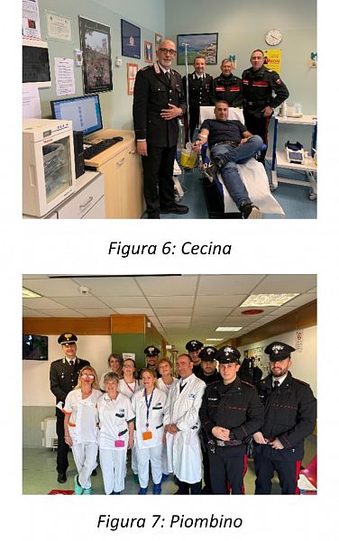 Analoga iniziativa si è svolta nei giorni 13 e 14 Marzo scorsi presso i nosocomi della provincia che hanno visto la gradita presenza dei carabinieri delle Compagnie dell'Arma di Cecina, Piombino e Portoferraio, presentatisi volontariamente per un’azione semplice ma fondamentale, che può fare la differenza tra la vita e la morte per molte persone: presso l'ospedale di Portoferraio 20 militari in servizio sull'Elba, 9 carabinieri della locale Compagnia presso l'ospedale Villamarina di Piombino e 7 carabinieri presso l'ospedale di Cecina.