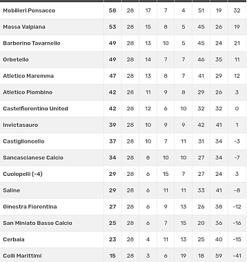 PIOMBINO — La vittoria ottenuta dal Piombino contro il Castiglioncello ha aperto uno spiraglio per guadagnare un posto nei play-off, anche se dovrebbero verificarsi non poche combinazioni favorevoli. Andiamo con ordine. La lotta per il quinto posto è limitata a tre squadre: Atletico Maremma (47), Atletico Piombino (42), Castelfiorentino (42). Prima di tutto il Piombino dovrebbe vincere le due partite che restano (Ginestra e Cuoiopelli in casa), quindi l’Atletico Maremma dovrebbe fare al massimo un punto in due partite (Castelfiorentino fuori e San Miniato Basso in casa), resta il Castelfiorentino, pure lui obbligato a vincere le gare che restano (Atletico Maremma in casa e Cerbaia in trasferta). L’Atletico Maremma parte favorito, perché ha 5 punti in più delle concorrenti, ma deve affrontare prima il Castelfiorentino - che si gioca l’ultima possibilità - quindi il San Miniato Basso (in casa), che è in piena lotta salvezza. Il Piombino ha i migliori scontri diretti, perché ha sempre vinto con entrambe le formazioni che lottano per il quinto posto. Ricordiamo infine che al termine del campionato, per poter giocare i play-off, Massa Valpiana non deve avere dieci punti in più della quinta. Tutto questo rende interessante la gara di Ginestra Fiorentina, dove la squadra locale - che occupa il quartultimo posto con punti 27 - lotta per salvarsi e vorrebbe inguaiare la Cuoiopelli, che ha soltanto due punti in più e gioca in casa contro l’Orbetello. La gara di andata contro la Ginestra finì 3 a 1 per il Piombino, ma fu molto combattuta, tra l’altro passò in vantaggio la squadra ospite con l’ottimo De Tellis (24’) - attaccante esperto dei biancorossi, un vero condottiero in campo - ma dopo sette minuti Mattia Pallini (10 reti in campionato) riportò la situazione in parità, per andare in vantaggio nel secondo tempo, grazie a un’autorete e triplicare con un gol di Calabrese a un minuto dal termine. La Ginestra non è un avversario storico, tra i precedenti ricordiamo solo due gare giocate nello scorso campionato: pareggio nei colli fiorentini (2-2, gol di Lunghi e Polese) e vittoria nerazzurra al Magona (2-0, gol di Durante e Diagne). La squadra nerazzurra è al completo, promette di dare battaglia e di giocarsela fino in fondo, su un campo per niente facile come quello di Ginestra Fiorentina. Va da sé che l’attenzione sarà concentrata anche su Castelfiorentino - Atletico Maremma.