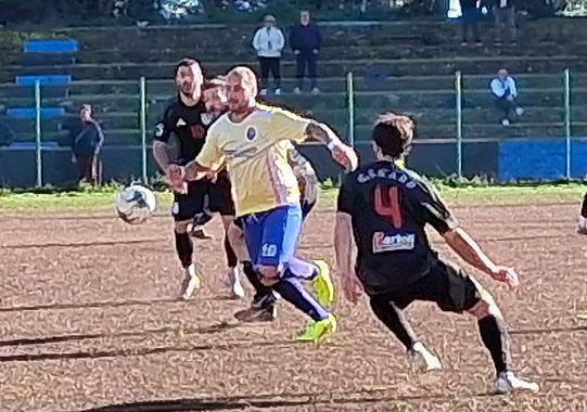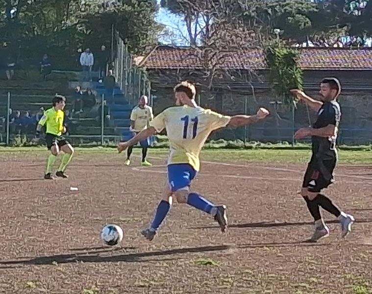 Andiamo con ordine, senza prima aver detto che il Piombino gioca con una maglia che non si può vedere da quanto è brutta, color giallo stinto. Gherardini e Masullo optano per un 4-4-2 offensivo con Filippo Pallini (2006) tra i pali; Cecchini e Quarta terzini; Fatticcioni e Polese centrali; Razzauti mediano di spinta; Milano e Lepri sulle fasce (che si scambiano nel secondo tempo); Paggini a macinar chilometri in mezzo al campo; Pirone e Calabrese in attacco. Forse non è la miglior formazione possibile, forse il Piombino prende sotto gamba l’avversario, fatto sta che nel primo tempo si vede solo un Cerbaia volitivo e grintoso, deciso a far sua l’intera posta per cercare di incamerare punti salvezza. Al 2’ un’insidiosa carambola di Mazzoni per poco non sorprende Filippo Pallini (fuori dai pali), per fortuna la palla esce sopra la traversa e finisce sul fondo. Al 10’ Vignozzi calcia da fuori area ma Pallini para. Il Piombino si vede solo grazie a una mezza rovesciata di Razzauti che finisce alta (12’) e con Lepri che sferra un gran tiro, su assist di Pirone, che termina fuori (20’). Al 23’ va in vantaggio il Cerbaia - a sorpresa, ma non troppo perché i biancazzurri dominano il centrocampo - con un calcio di punizione dal limite (dubbio) realizzato da Burato, che trova un punto debole nella barriera disposta da Filippo Pallini. Un Piombino sconclusionato e confuso non riesce a trovare il bandolo della matassa, rendendosi conto che queste sono le partite più difficili, perché l’ultima della classe mette in campo grinta e passione per cercare di fare risultato. Al 41’ la svolta della gara. L’incerto signor Prodromos di Siena espelle (giustamente) Mbengue per doppia ammonizione, visto che l’ala sinistra ospite commette due scorrettezze plateali in rapida successione. Il Piombino pressa nei minuti finali della prima fazione di gioco e al 43’ un cross di Paggini viene corretto a rete di testa da Fatticcioni, ma il giovane Marinai para. Al 45’ l’arbitro non rileva un netto fallo di mano in area commesso da Lotti e lascia proseguire il gioco, anche se i piombinesi non protestano più di tanto. Finisce il primo tempo 0 a 1 per gli ospiti, risultato giusto, perché la squadra di casa ha disputato 45’ regolamentari e tre di recupero in modo scialbo, in piena sintonia con il colore stinto delle sue maglie.