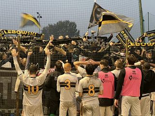 PIOMBINO — Vent’anni di tifo per il Lebowski. Vent’anni di Ultras corretti e simpatici, soprattutto civili, ragazzi che incitano la loro squadra incessantemente, ma che non si sognano neppure di infastidire i sostenitori avversari, al punto che i pochi aficionados nerazzurri sono liberi di gridare senza avere alcun problema. Questo è il calcio dilettantistico che ci piace. Unico neo alcuni fumogeni lanciati durante i primi minuti di gara e lo scoppio di qualche (innocuo) petardo, che hanno costretto l’arbitro a fermare il gioco per tre minuti.