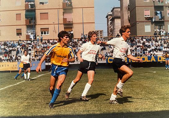 Abbiamo raggiunto Luca telefonicamente per avere una sua dichiarazione sugli anni vissuti nel calcio da protagonista: “Nella stagione 1979/80 fui convocato per la prima volta in prima squadra nella trasferta a Carbonia. Mi ricordo che presi per la prima volta in vita mia l’aereo, non giocai nemmeno un minuto, ma fu un’esperienza bellissima. Avevo 17 anni e credo che la domenica dopo ci fu l’esordio davanti al pubblico di Piombino che riempiva sempre il Magona (contro il Velletri, nda). Nella stagione successiva la società decise di partecipare al campionato di Promozione contando solo sui giovani calciatori piombinesi allenati da Giuliano Cioni. Nel 1982, invece, fu una grande annata perché vincemmo il campionato di Promozione, come allenatore ricordo il grande Lamberto Pazzi. Ma la gioia più bella a livello professionale fu la vittoria del campionato 1984/85 di serie D con la Juve Stabia, dove io e Alessandro Tognarini eravamo due sconosciuti, ma piano piano, partita dopo partita ci siamo fatti amare dal popolo stabiese, dove abbiamo continuato a giocare negli anni a seguire in un campionato professionistico importante come la C2. Esperienza che porterò sempre nel mio cuore. Comunque, anche se sono 28 anni che abito a Roma, ho il cuore nerazzurro e la domenica sera la prima cosa che faccio mi informo sul risultato del Piombino. D’altra parte ho fatto tutta la trafila delle giovanili e ho giocato ben 13 stagioni in prima squadra. Per un piombinese come me vestire quei colori è stato un orgoglio che non ha eguali”.