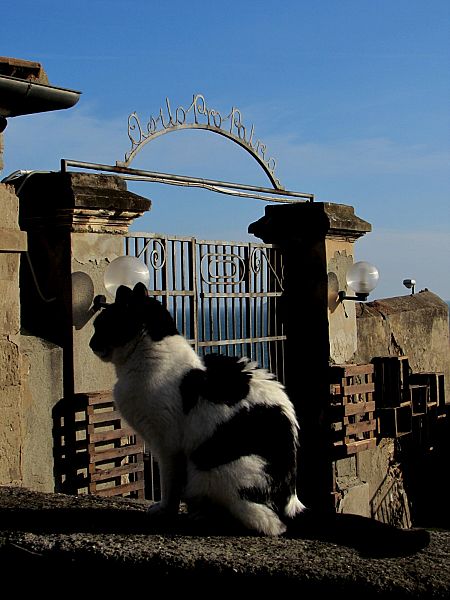 E guarda in cielo, dove una nuvola bianca pare aver preso l’aspetto di un signore in giacca e cravatta, panciotto d’altri tempi e baffi a manubrio, che sta divorando una pasta ripiena di mandorle e canditi, mentre lo zucchero a velo si sparge nel cielo e va a comporre brandelli di nuvole.